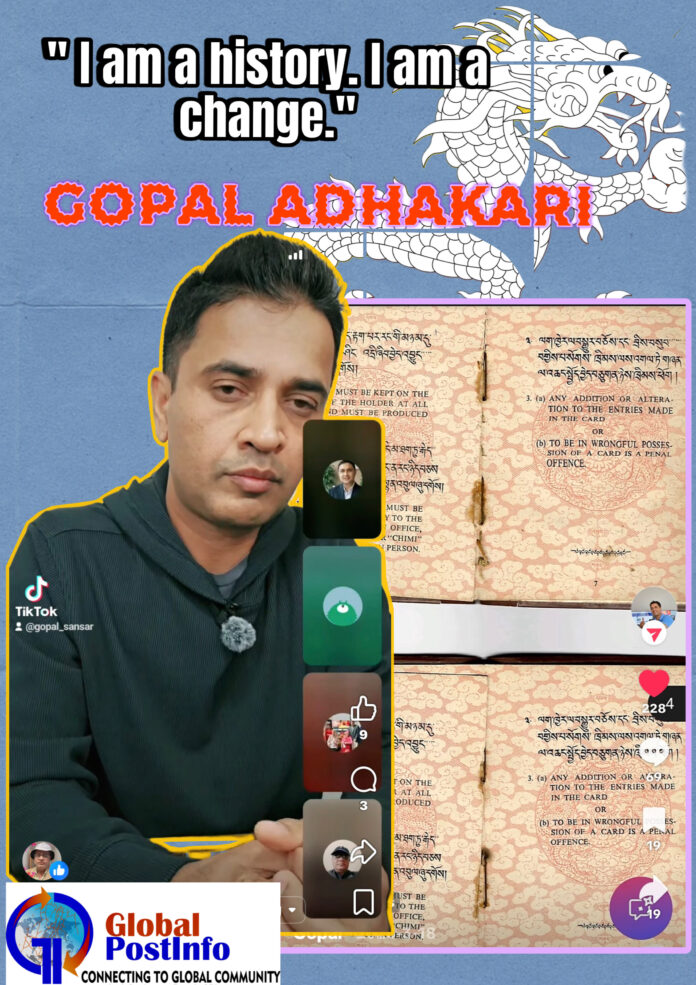 “म एक इतिहास हुँ, म एक परिवर्तन हुँ” – यो कुनै फिल्मको संवाद होइन, बरु तीन दशकदेखि न्यायको पर्खाइमा रहेका हजारौँ भुटानी नेपाली भाषीहरूको मुटुको धड्कन हो। युवा अभियन्ता गोपाल अधिकारीले अहिले सामाजिक सञ्जाल (टिकटक) लाई मनोरञ्जनको थलोबाट बदलेर भुटानी मानव अधिकार र पहिचानको ‘डिजिटल रणभूमि’ बनाएका छन् ।