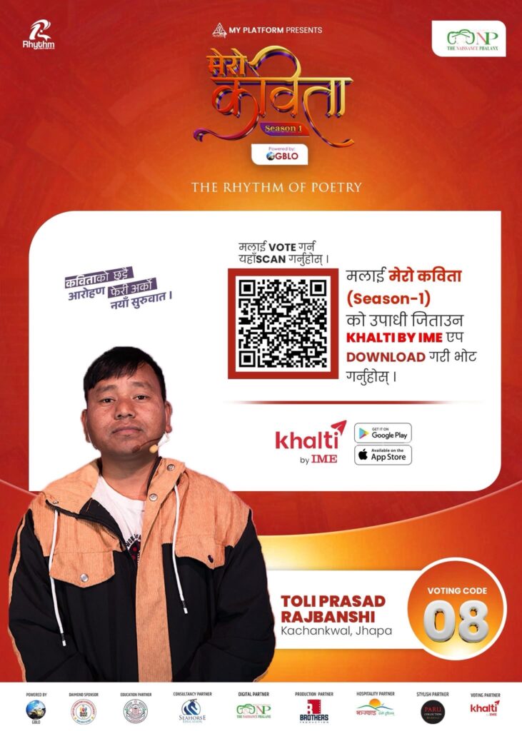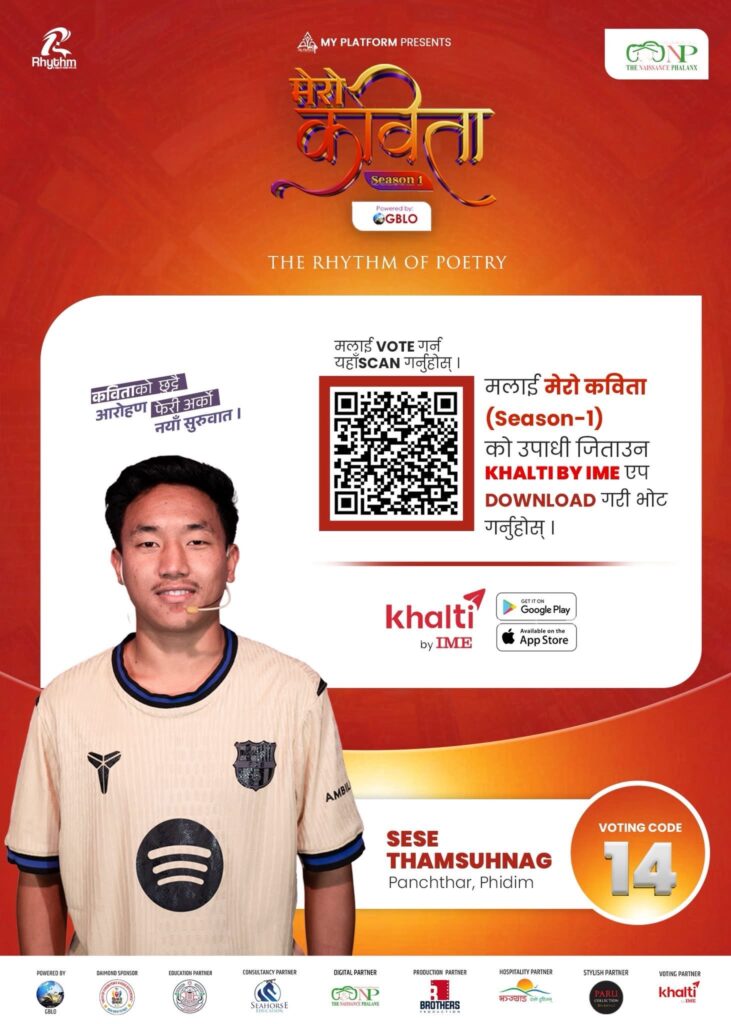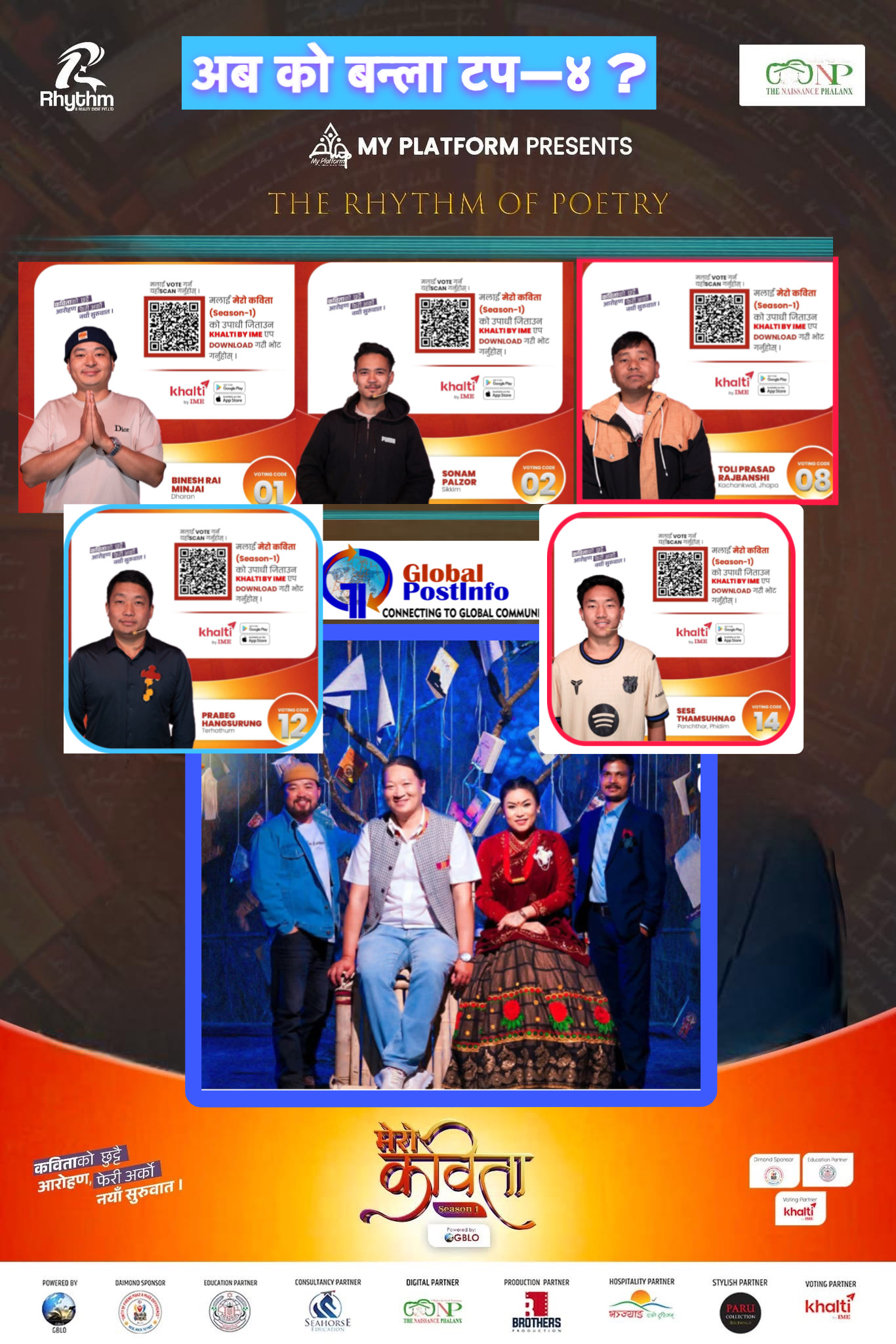 लोकप्रिय काव्य प्रतियोगिता “मेरो कविता : द रिदम अफ पोएट्री” सिजन–१ अब सबैभन्दा रोचक चरणमा प्रवेश गरेको छ। १५औँ शृङ्खलासँगै उत्कृष्ट पाँच प्रतिस्पर्धीको टुंगो लागेपछि अब सबैको ध्यान एउटै प्रश्नमा केन्द्रित भएको छ | अब को बन्ला टप–४ फाइनलिस्ट ?
