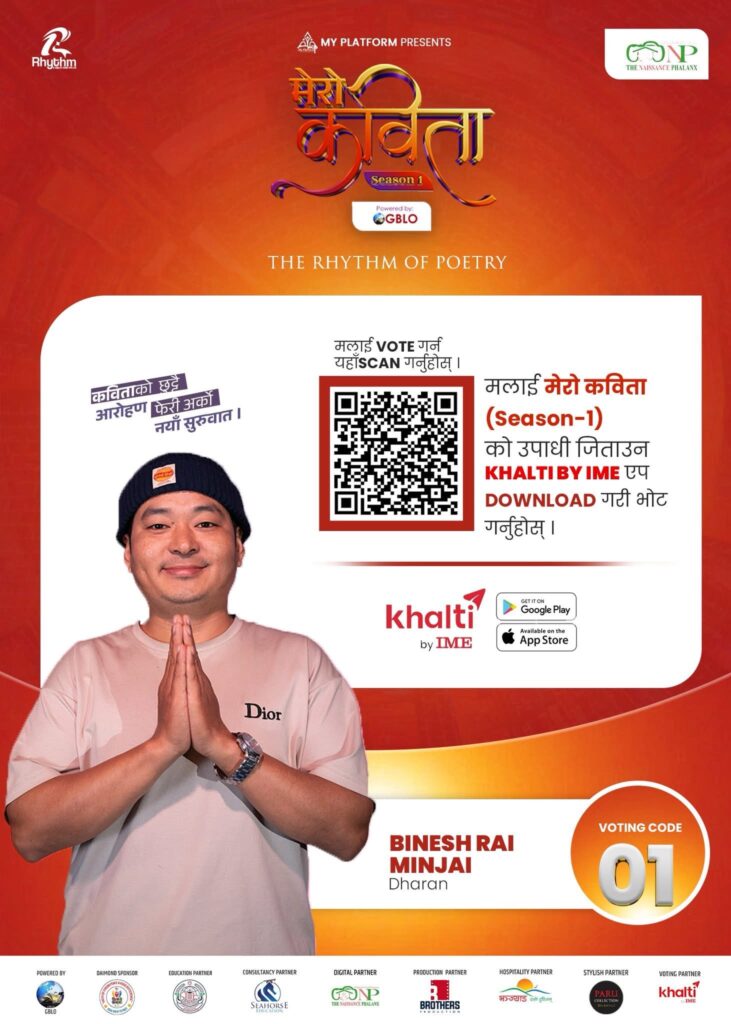 “कविता केवल प्रतियोगिता होइन, यो हाम्रो भाषा, संस्कृति र पहिचानको आवाज हो। त्यसैले दर्शकहरूले आफ्ना मनपर्ने कविलाई भोट गरेर यो साहित्यिक यात्रामा साथ दिनु आवश्यक छ,” उनले भने।