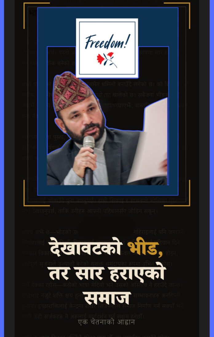 झरीपछिका च्याउझैँ क्षणभर जुर्मुराएर देखा पर्ने उत्साहहरू एकाएक हराउँछन्—न त तिनले गहिरो छाप छोड्छन्, न दीर्घकालीन अर्थ। यस्तो अवस्थामा यो देखावटको भीड वास्तवमा सार हराएको समाजको प्रतीक बनेको छ।