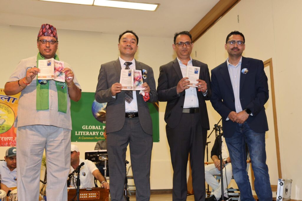 आदरणीय अध्यक्षज्यू, प्रमुख अतिथिज्यू, मञ्चासीन महानुभावहरू, साहित्यप्रेमी उपस्थित सज्जनवृन्द तथा नेपाली भाषा, साहित्य रगीत–संगीतलाई माया गर्ने सम्पूर्ण आत्मीयजनहरूमा हार्दिक नमस्कार।