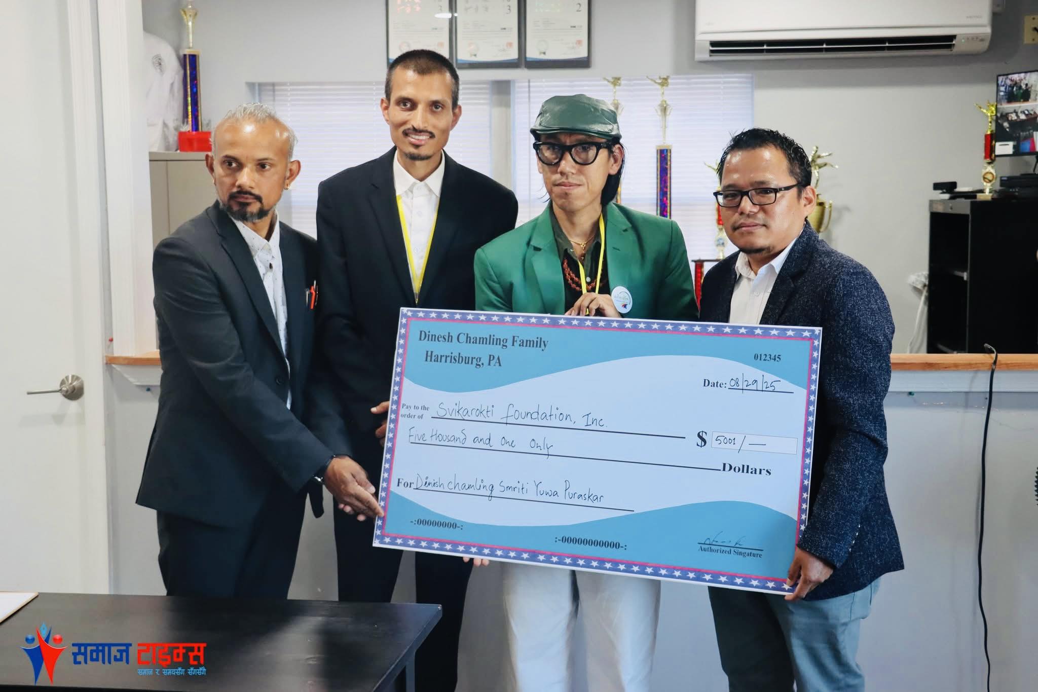 Svikarokti Foundation, Inc. received the third edition of the Dinesh Chamling Memorial Youth Award through an award presentation ceremony at 6700 Derry Street, Harrisburg. The winner of this year’s award was announced at the 6th Grand International Creative Ceremony at The Hague, Netherlands, on June 14, 2025. The official handover took place today.